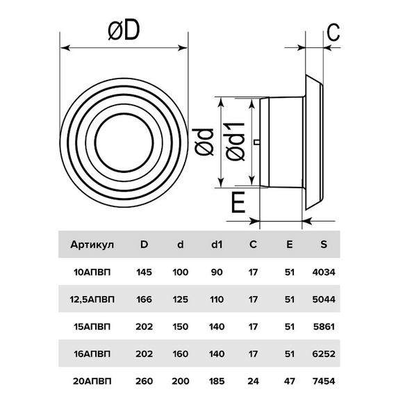 Анемостат приточно-вытяжной с фланцем Mistral D100