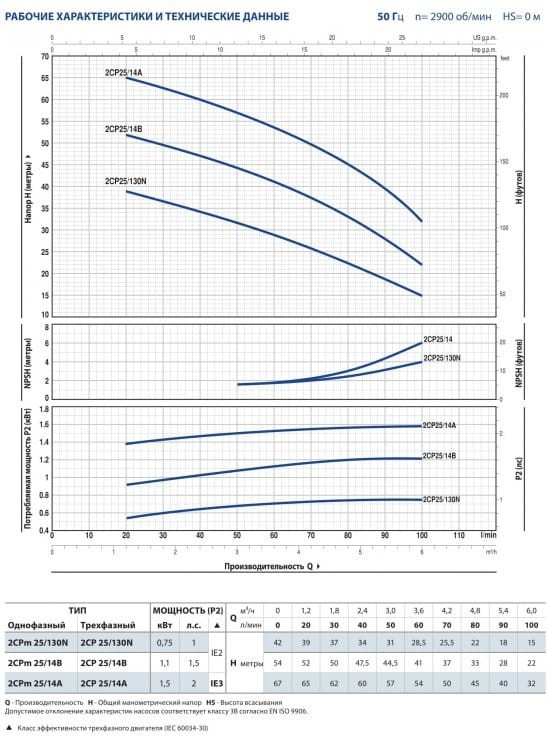 Центробежный насос с двумя рабочими колесами Pedrollo 2CP25/14A 1,5 kW