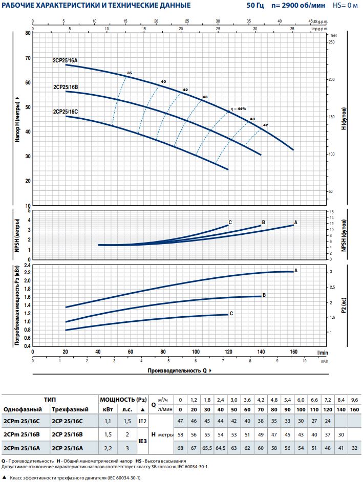 Центробежный насос с двумя рабочими колесами Pedrollo 2CPm25/16A 2,2 kW