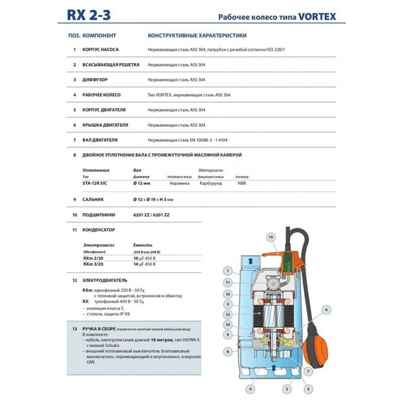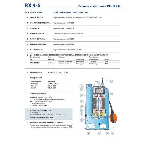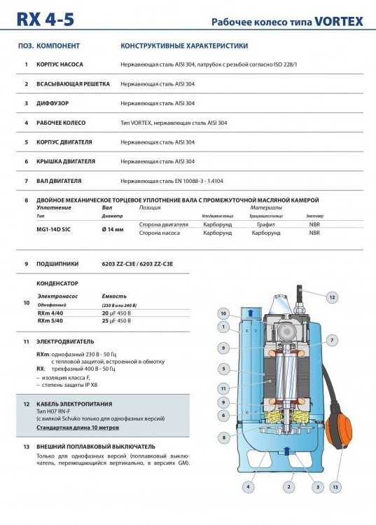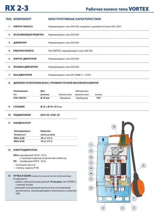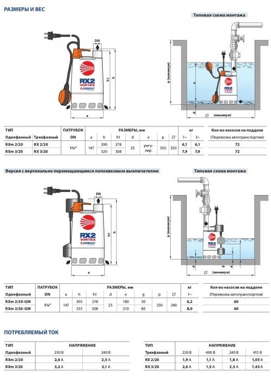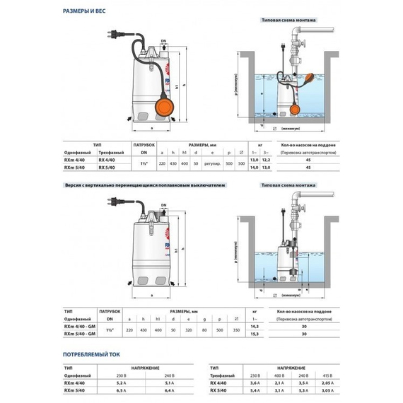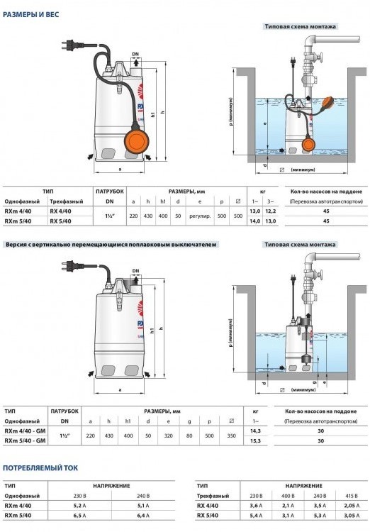Дренажный насос Pedrollo RXm3/20-GM 0.55 kW