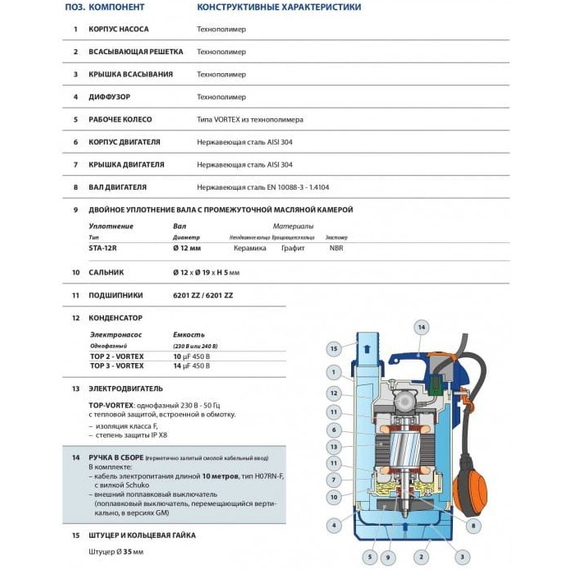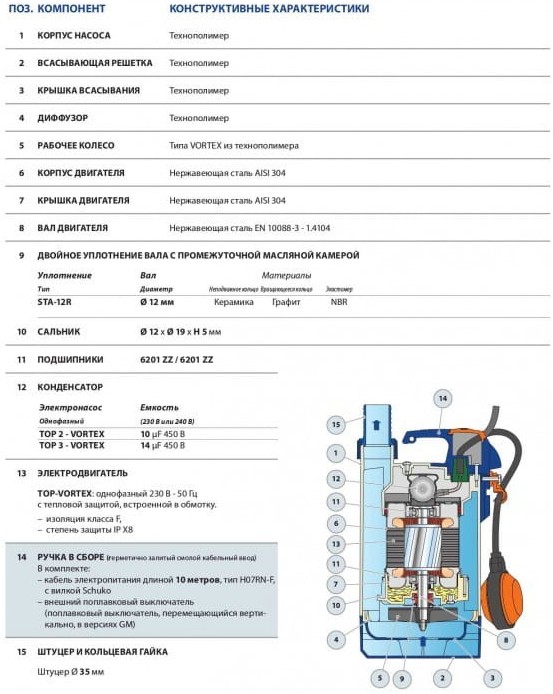Дренажный Pedrollo TOP 3-VORTEX / GM 0,55 kW