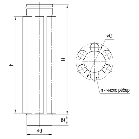 Дымоход-конвектор Ferrum D115 (0,8 мм)
