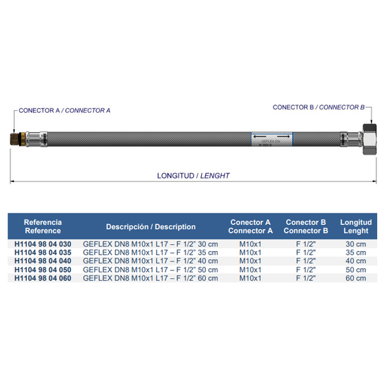 Гибкая подводка вода dn 8 M10x1 L37 1/2F 50 cm Genebre