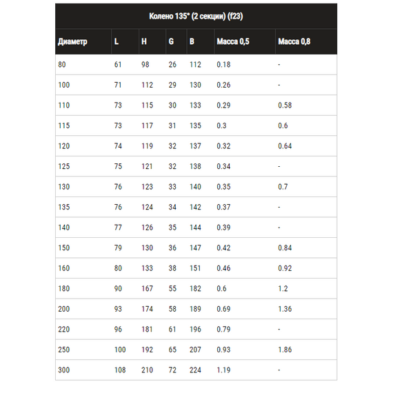 Колено угол на 135° для дымохода (2 секции) Ferrum D130 (0,5мм)