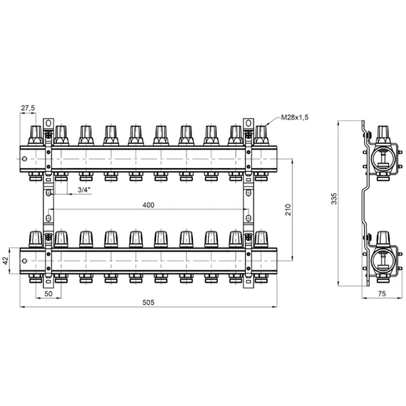 Коллектор для тёплого пола 1"x 10 вывод. ICMA