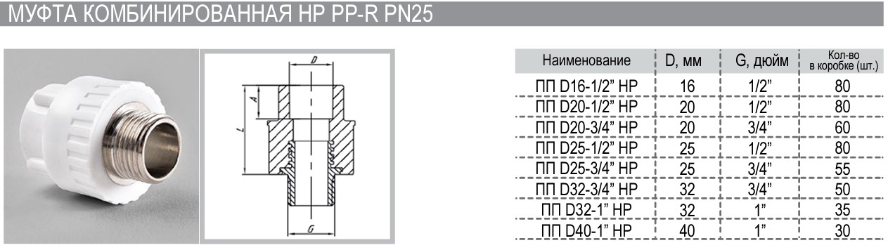 Муфта комбинир. 20х3/4 M PN25 РВК(60)