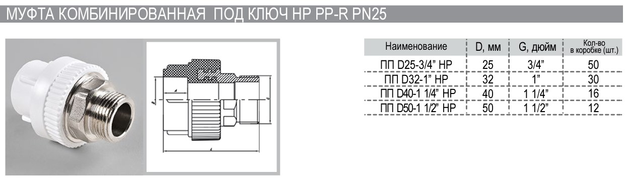 Муфта комбинир. 40х1 1/4 M PN25 (под ключ) РВК (16)
