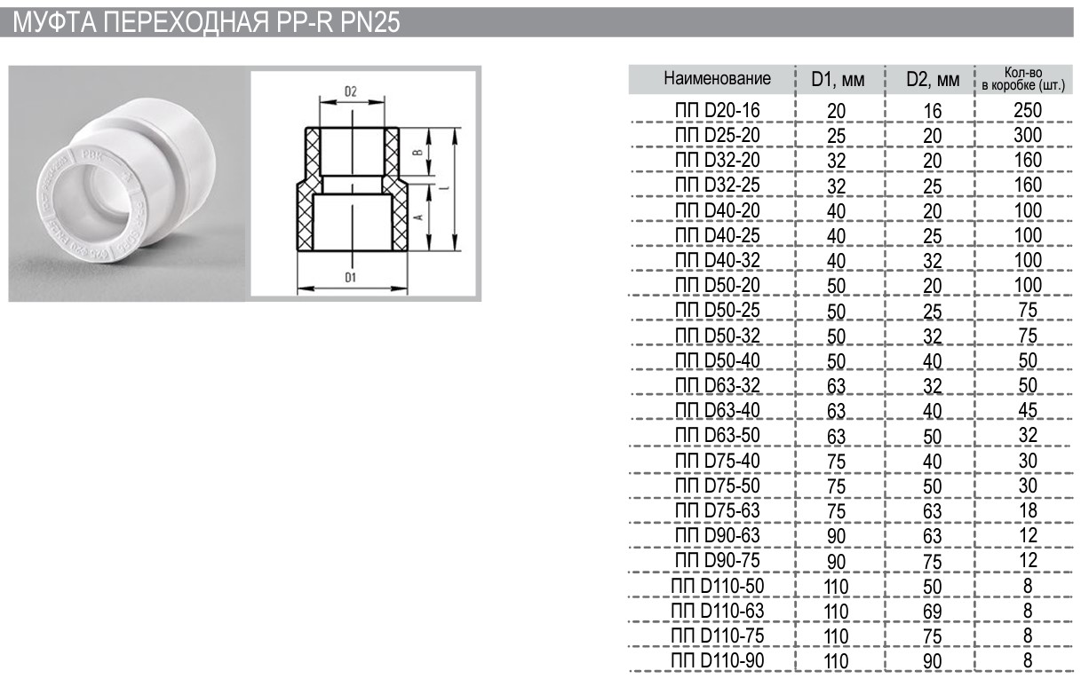 Муфта перех 32х25 FF PN25 PP-R РВК(160)