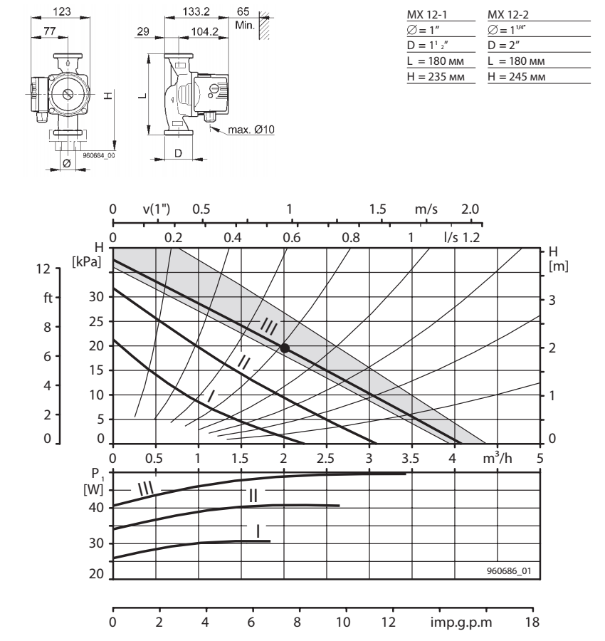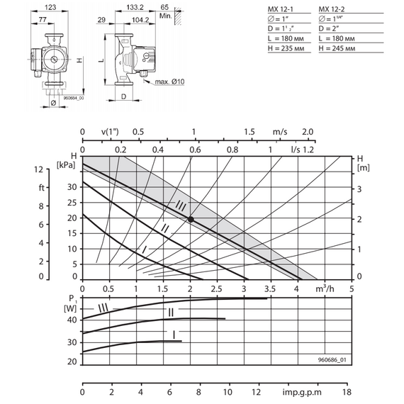 Насос циркуляционный MX 12-1 DN25 26-50W -180 (H=4m, Q=4.2m3/h) BIRAL