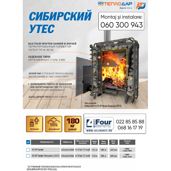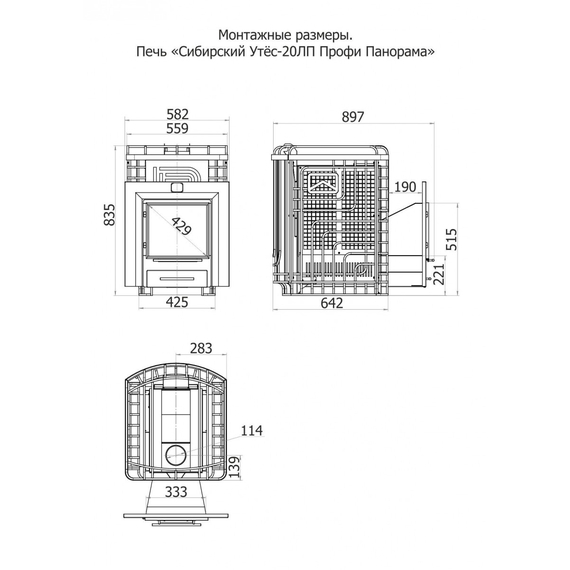 Печь для бани Теплодар СИБИРСКИЙ УТЕС-20 ЛП Профи Панорама (без двери 16"/обрамления) 20 kW