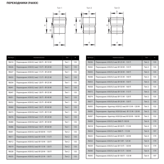 Переходник МП для дымохода Ferrum D100М-115П (0,5мм)