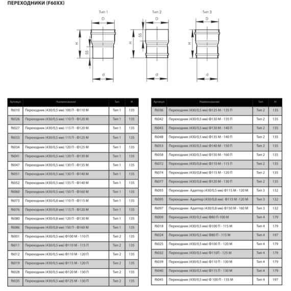 Переходник МП для дымохода Ferrum D115М-130П (0,5мм)