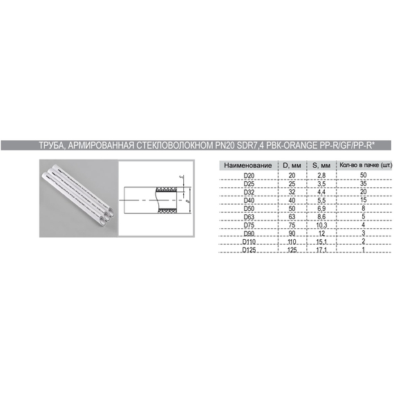 PN20 Труба PP-R 25х3,5 SDR7,4 (стекловолокно) PROFI РВК(140)