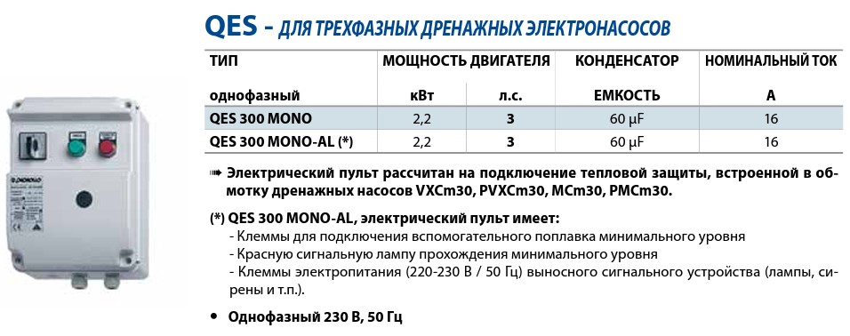 Пульт управления однофазный QES 300 (2.2 кВт) Mono Pedrollo