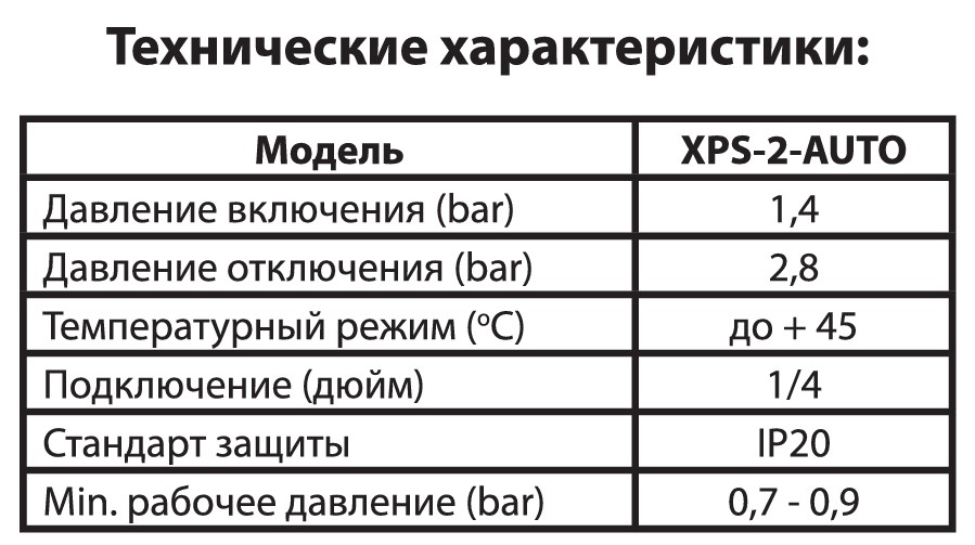 Реле давления c защитой от сухого хода XPS-2-AUTO JEMIX