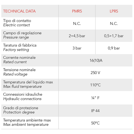 Реле давления PM/5 (1-5 бар) 1/4 F (220V) с шкалой и вращающейся гайкой Italtecnica
