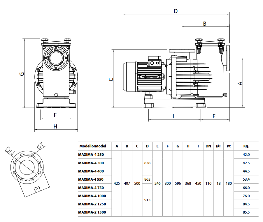 Самовсасывающий насос для бассейна с бронзовой крыльчаткой Pedrollo Maxima-4 1000 T 7,5 кВт