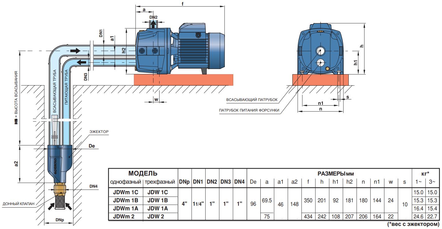 Самовсасывающий насос Pedrollo JDWm 2/30-4 1,1 kW