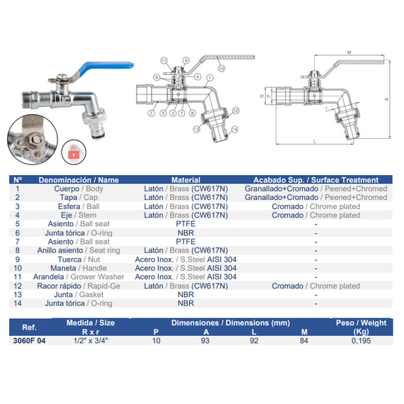 Шаровой кран со штуцером "RAPIDE-GE" 1/2'' (защиты от замерзания) Genebre