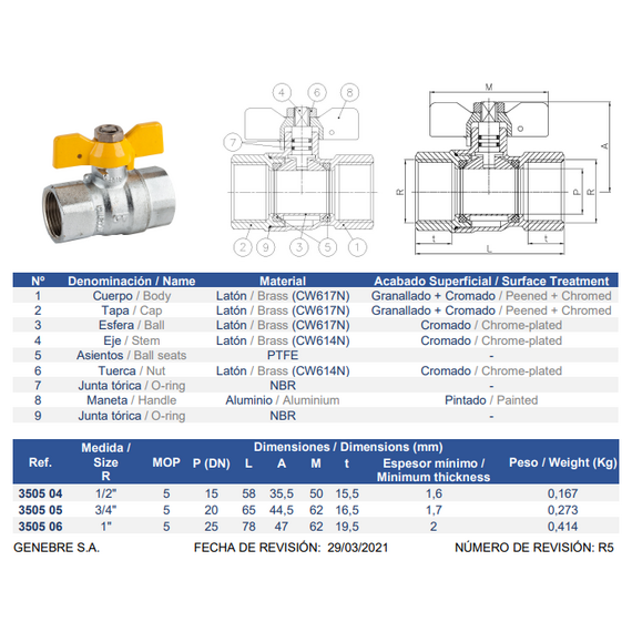 Шаровый кран для газа бабочка 1/2" FF (хром) Genebre