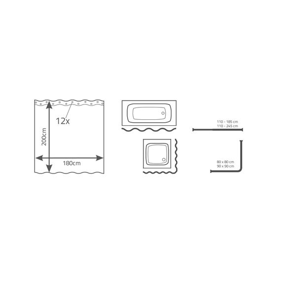 Штора для душа текстильная Pico серая 180x200 мм