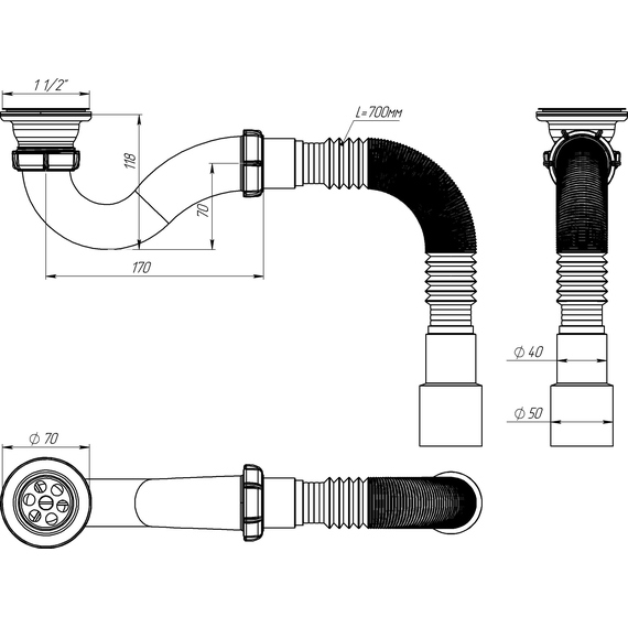 Сифон для душ. поддона c ГТ 40*40/50, Aquant