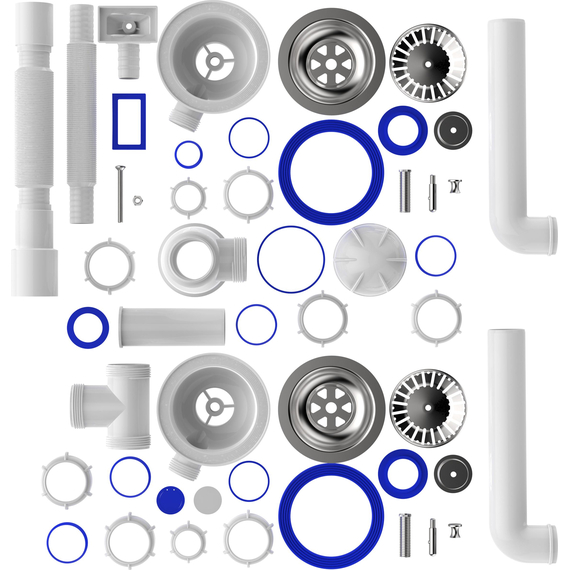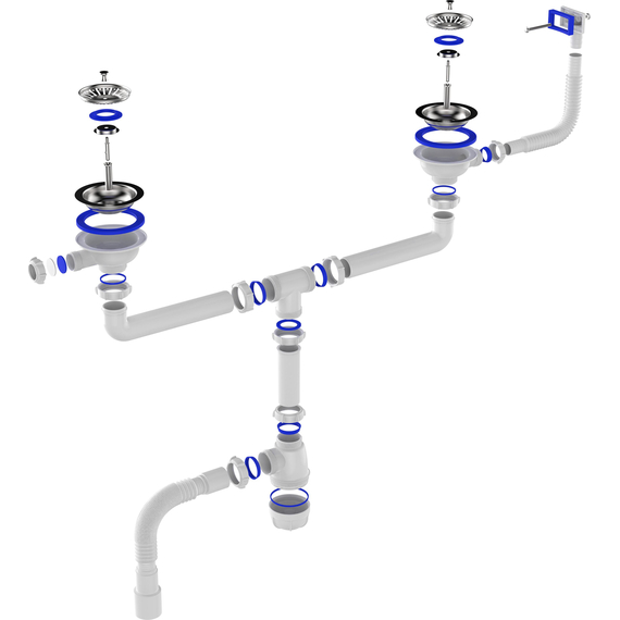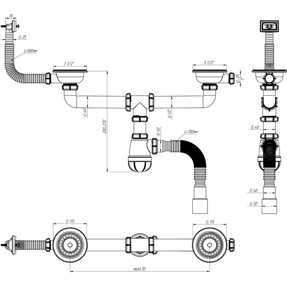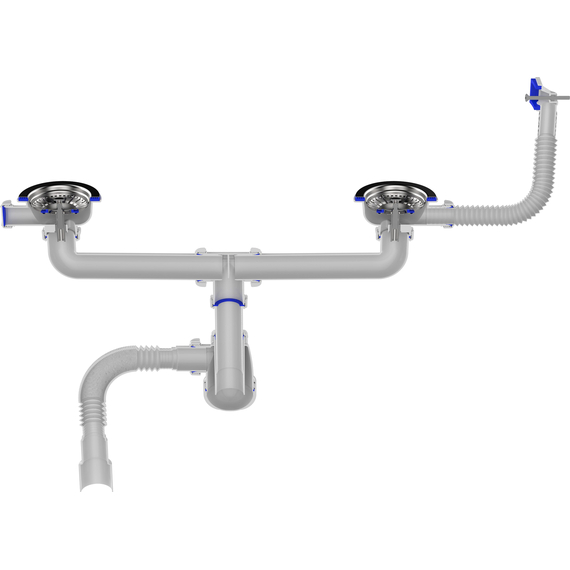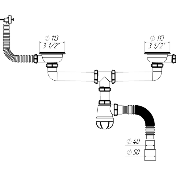 Сифон для мойки сдвоенный 3 1/2" х 40 с прямоугольным переливом с г.т. 40х40/50, Aquant