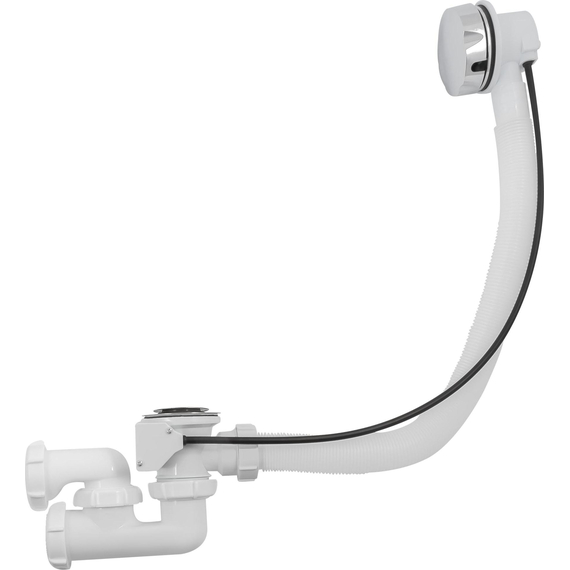 Сифон для ванны регулируемый с переливом полуавтоматом белый, Aquant