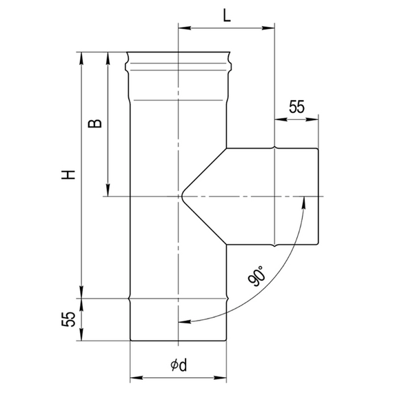 Тройник-К на 90° для одностенного дымохода Ferrum D150 (0,5 мм)