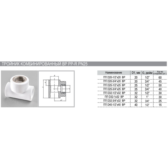 Тройник комб. 32x1 F PN25 РВК(30)