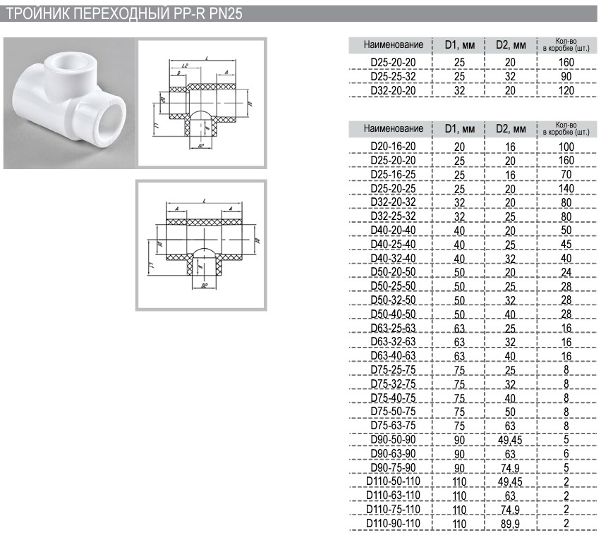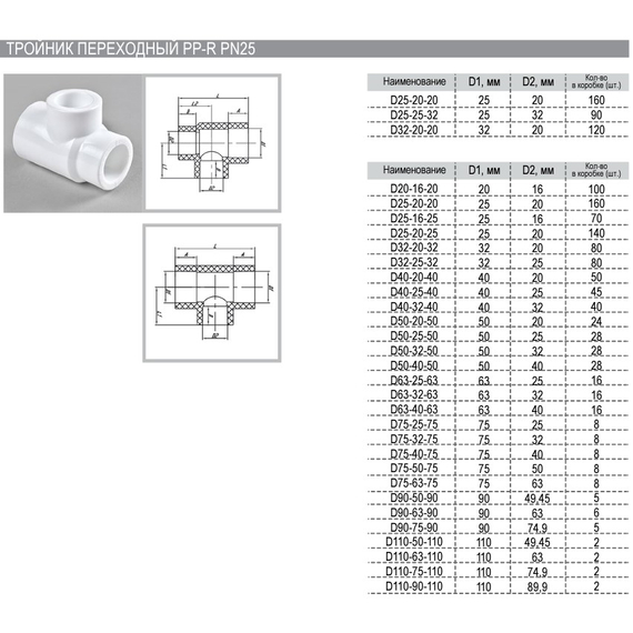 Тройник перех. 20x25x20 PN25 РВК(80)