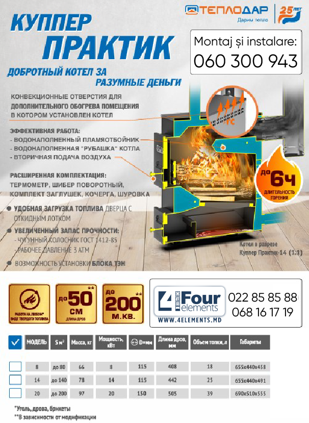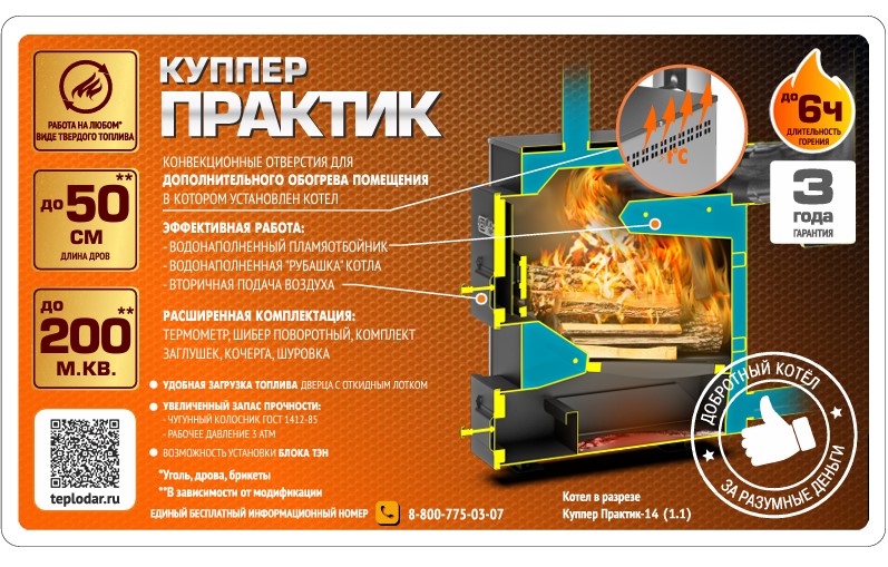 Твердотопливный котел 14 кВт Теплодар Куппер ПРАКТИК-14 1.1
