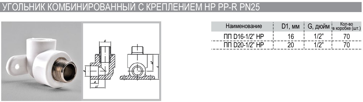 Угольник комб. с креплением 20х1/2M PN25 (водорозетка) РВК