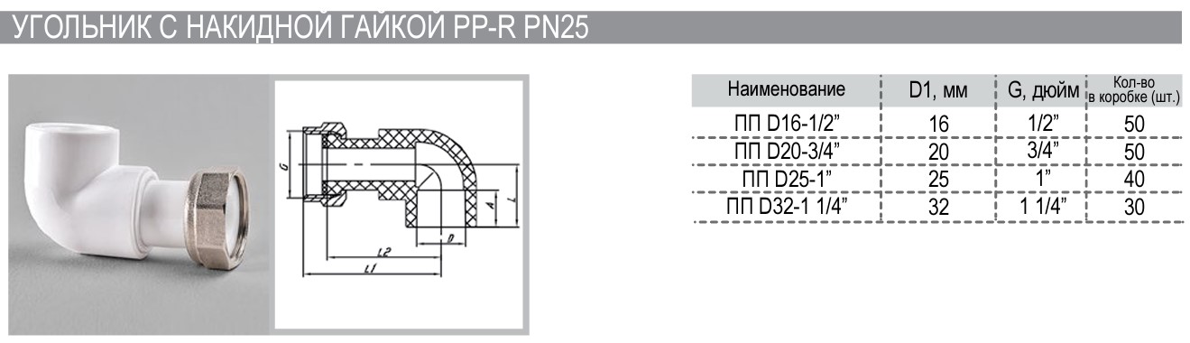 Угольник с накидной гайкой 32x1 1/4 90 PPR РВК