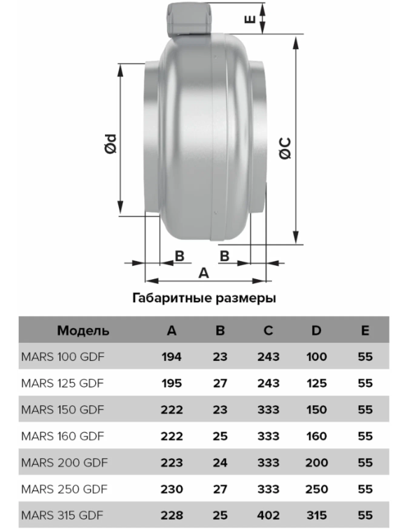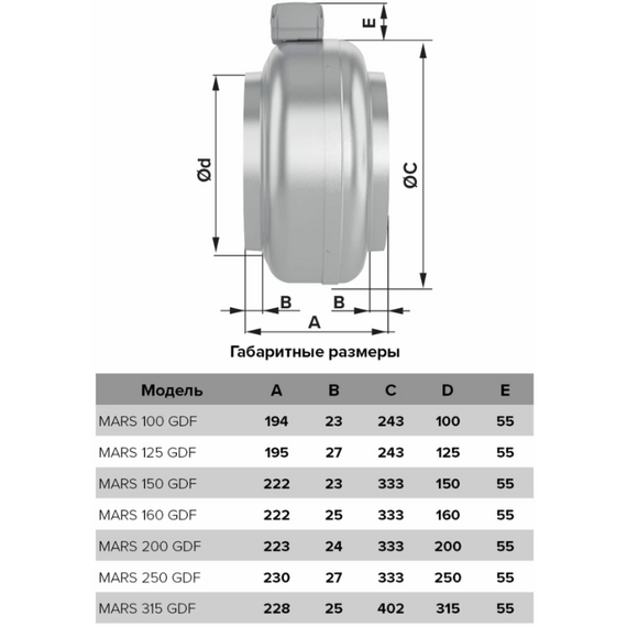 Вентилятор центробежный канальный MARS д.100 Era Pro