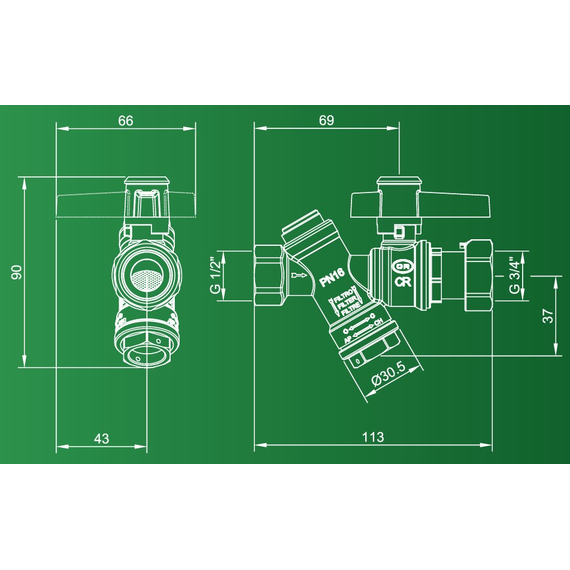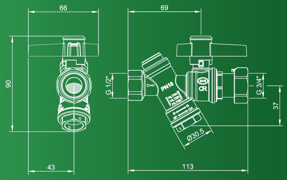 Впускная группа для счетчика в комплекте с фильтром PN16 1/2*3/4" OR
