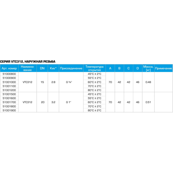 VTC 312 Термостатический 3-ходовой клапан DN25, KVS3,2, Rp 1'', T60C ESBE