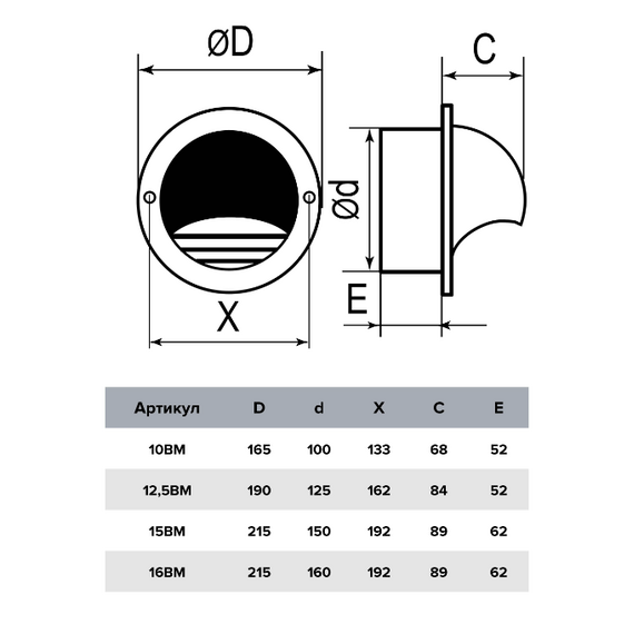 Выход стенной металлический д.150 Mistral