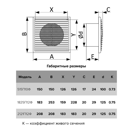 Вытяжная вентиляционная решетка из АБС-пластика с рамкой и фланцем Mistral 21х21 D125 White