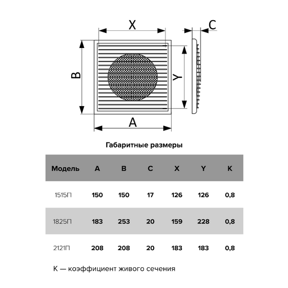 Вытяжная вентиляционная решетка из АБС-пластика с рамкой и сеткой Mistral 21х21 White